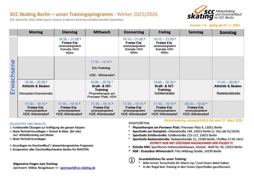 Hier findet ihr die aktuellen Trainingspläne für den Winter 2025 / 2026